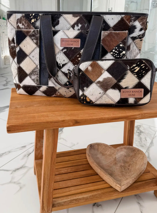 Boho Luxe Toiletry Bag Genuine Hair Travel Storage